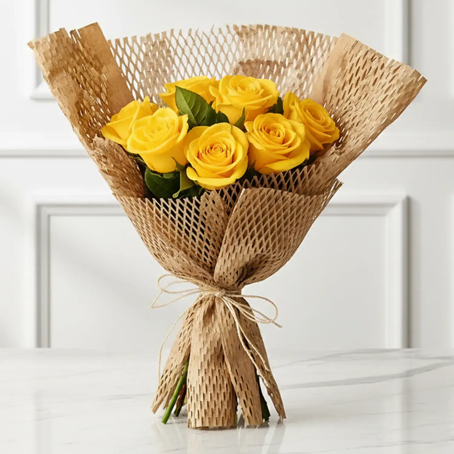 Buquê De 10 Rosas Amarelo Com Folhagem