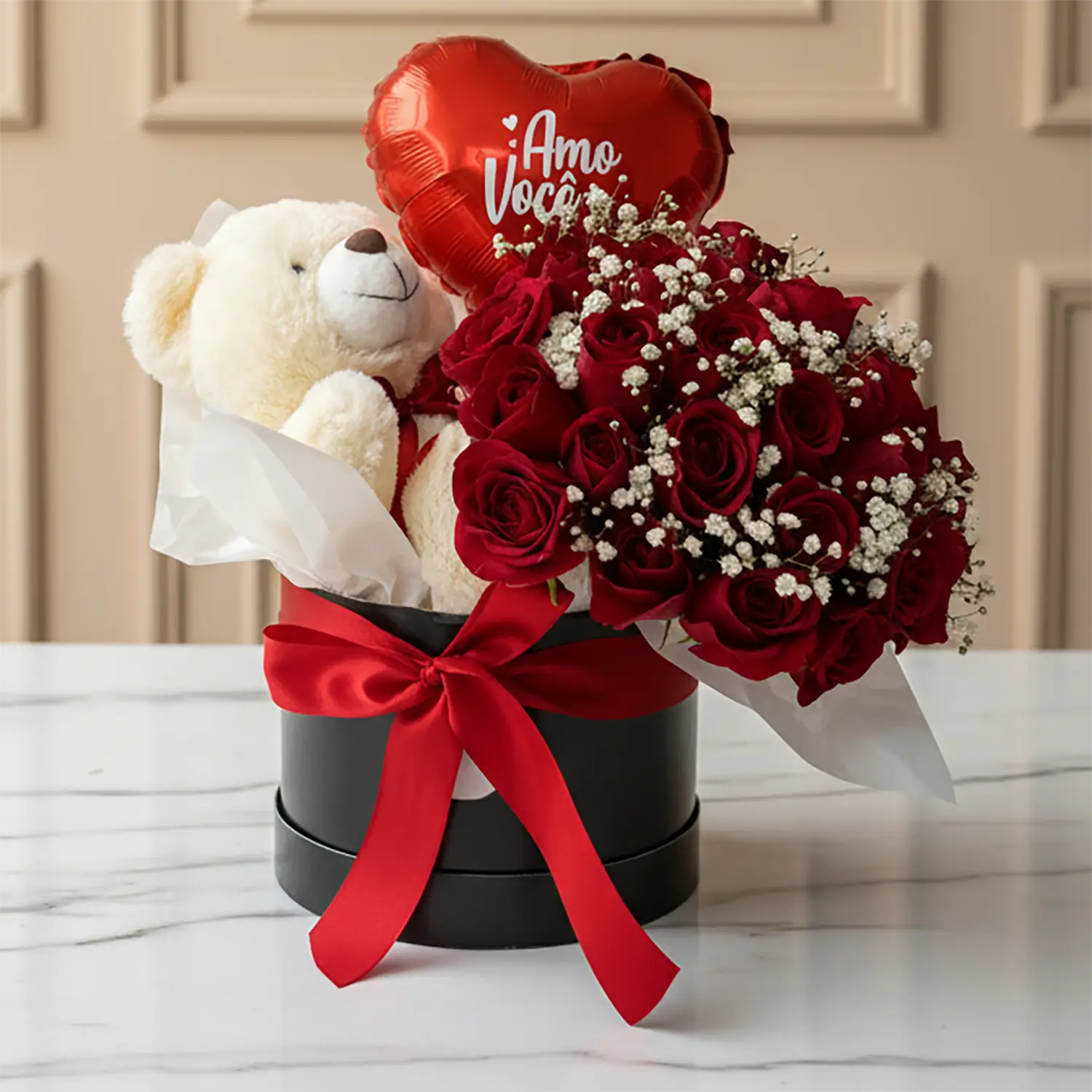 20 rosas vermelhas com mosquitinho | BOX DE LUXO| URSINHO