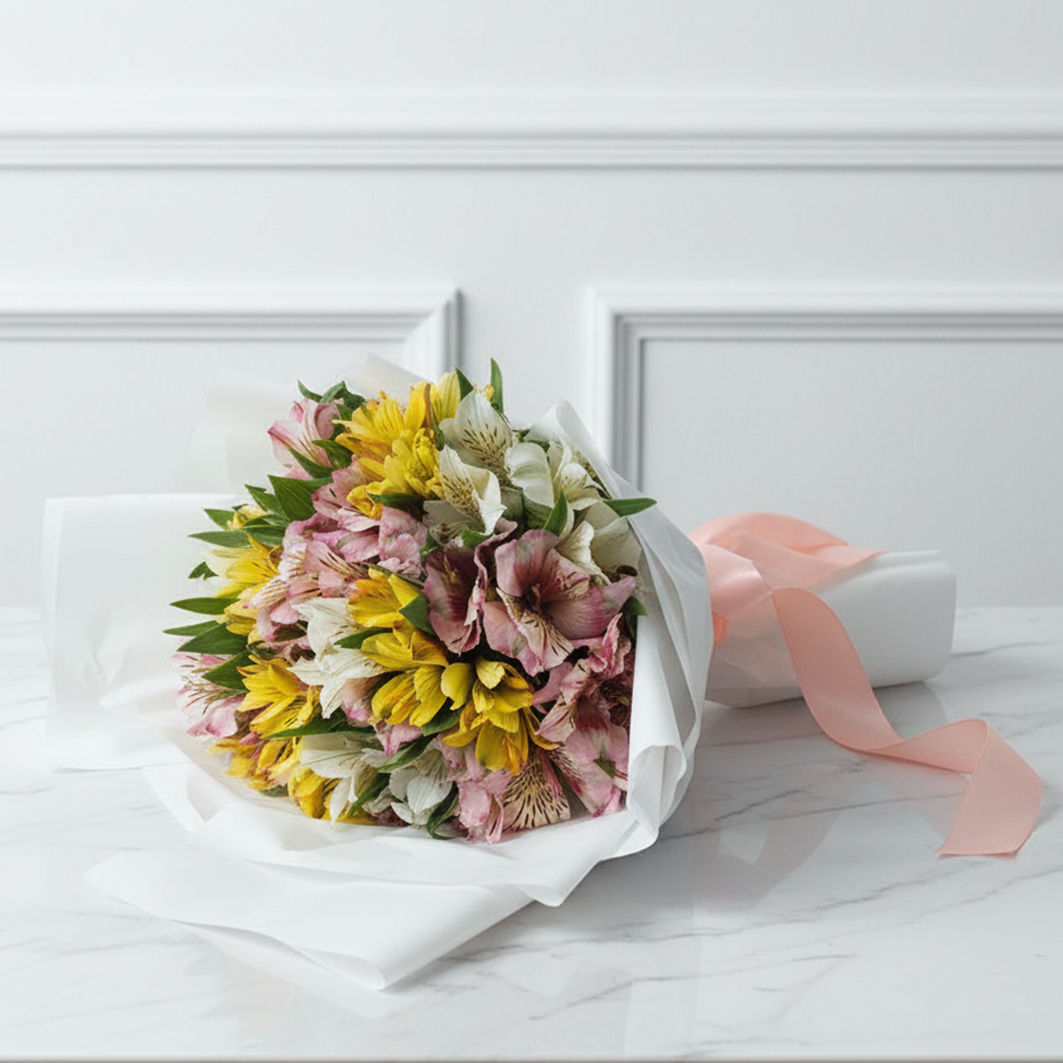 Cuidados: Assim que receber o buquê, retirar da embalagem cortar os caules na diagonal e colocar na agua. Trocar a agua a cada 2/ 3 dias, e cortar o caule na troca da agua.