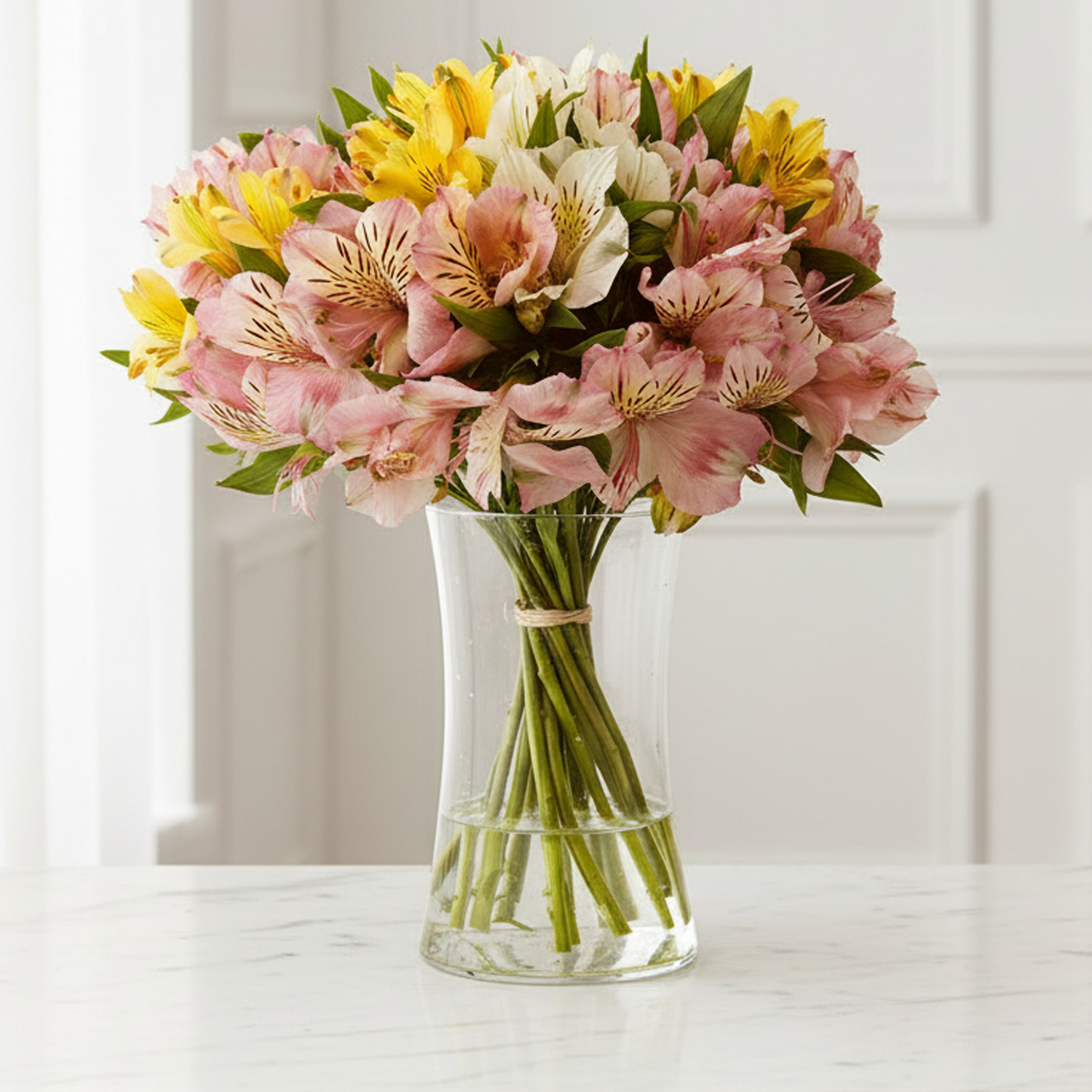 Cuidados: Assim que receber o buquê, retirar da embalagem cortar os caules na diagonal e colocar na agua. Trocar a agua a cada 2/ 3 dias, e cortar o caule na troca da agua.