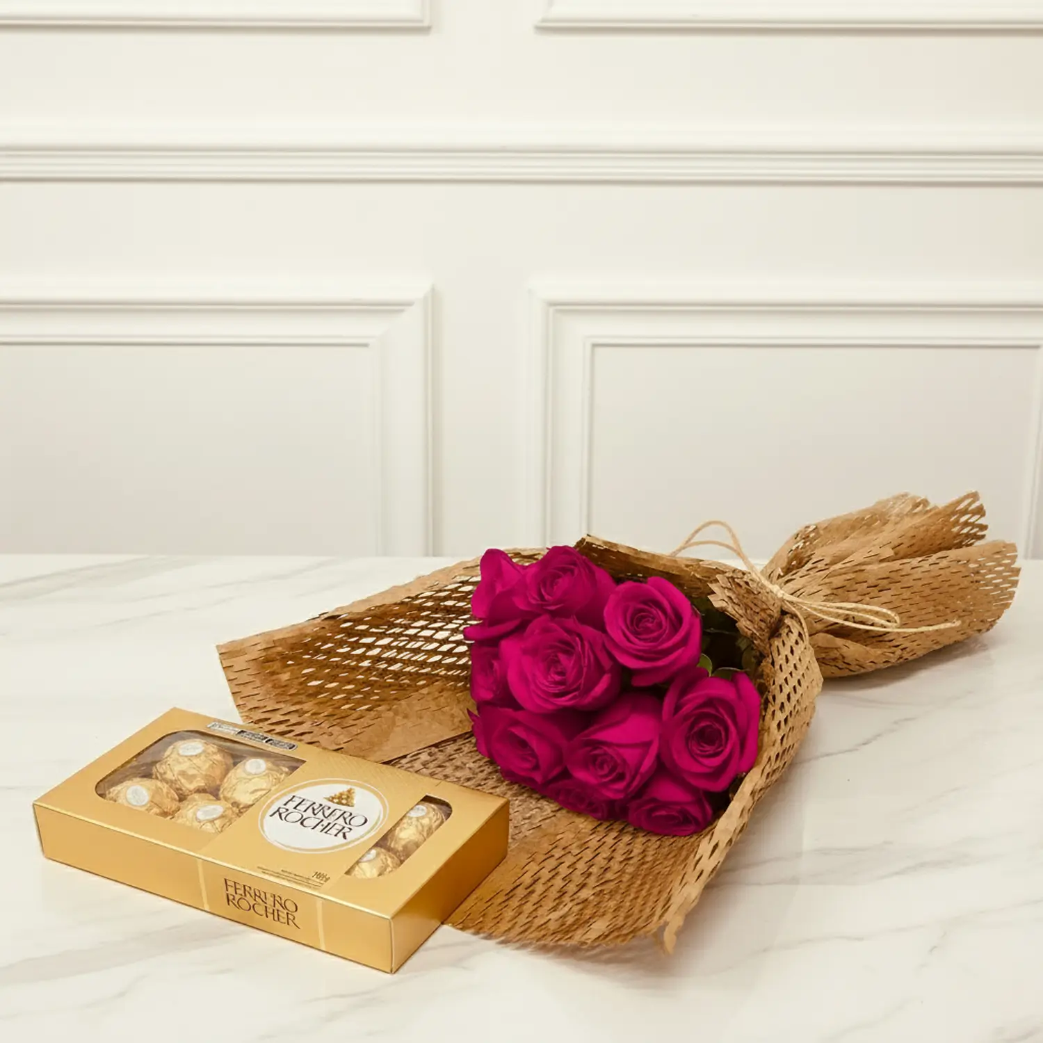Composição: 12 Rosas vermelhas e embalagem com chocolate ferreiro rocher de 100G