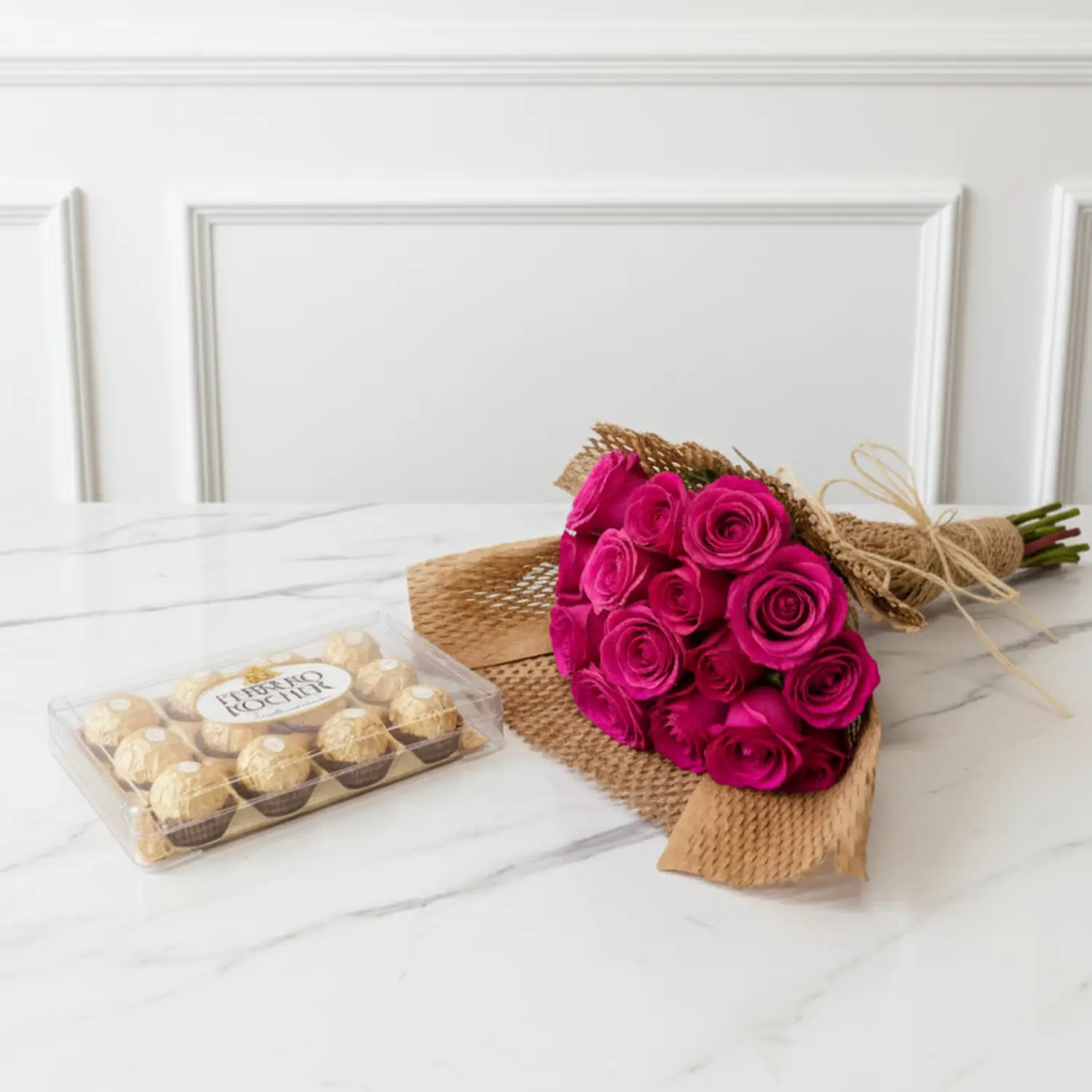 Composição: 12 Rosas vermelhas e embalagem com chocolate ferreiro rocher de 150G