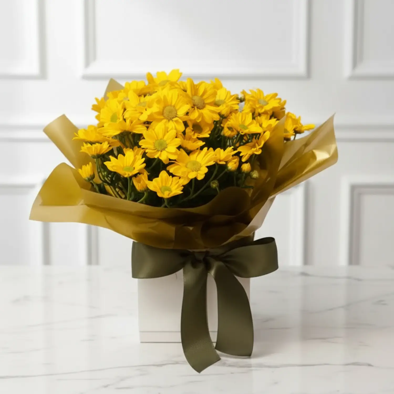 Você tem o poder de personalizar seu arranjo escolhendo a cor das margaridas: amarela ou branca. Seja para transmitir a alegria do sol com o brilho das margaridas amarelas ou a pureza e simplicidade das margaridas brancas, cada escolha é uma expressão única de carinho e afeto.