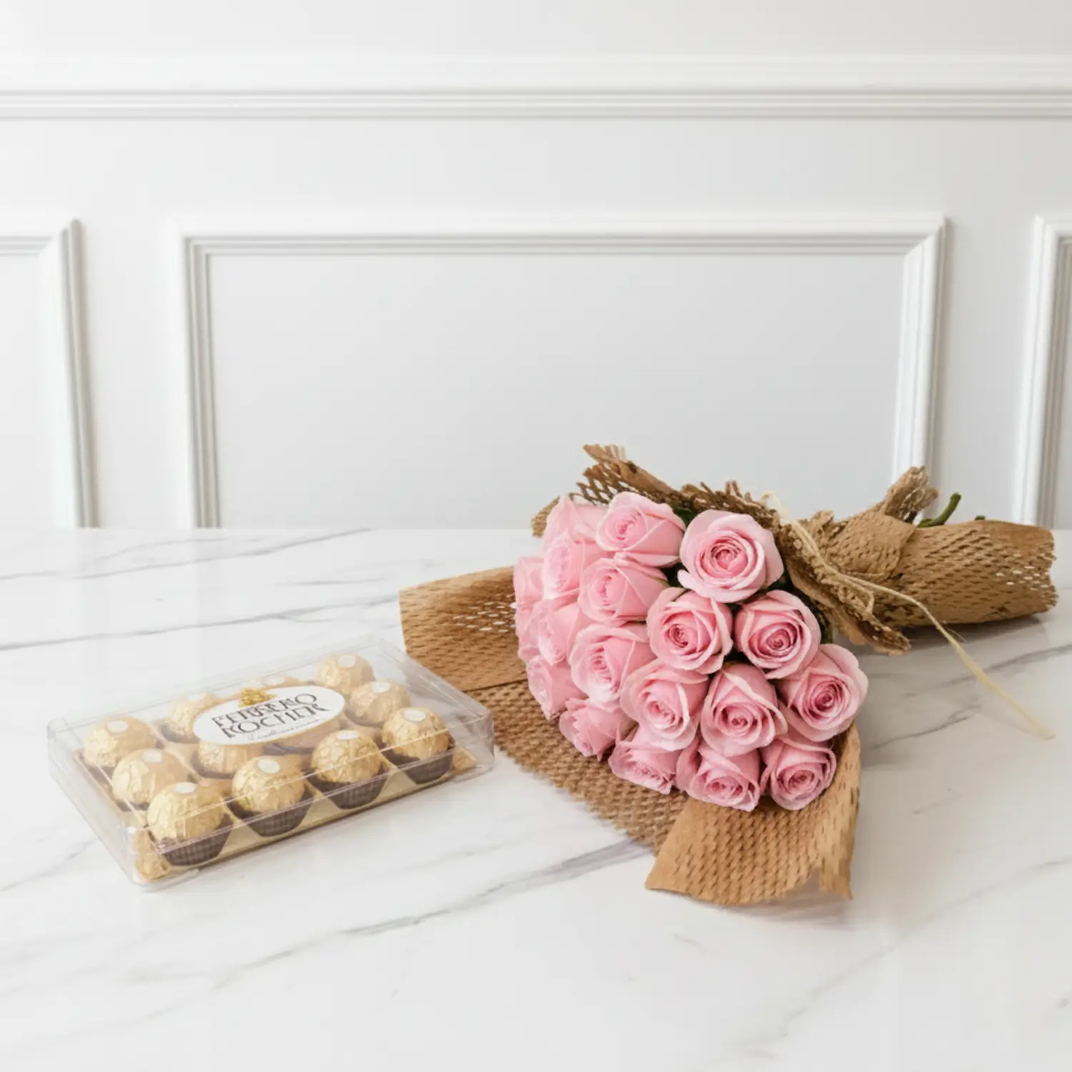 Composição: 12 Rosas vermelhas e embalagem com chocolate ferreiro rocher de 150G